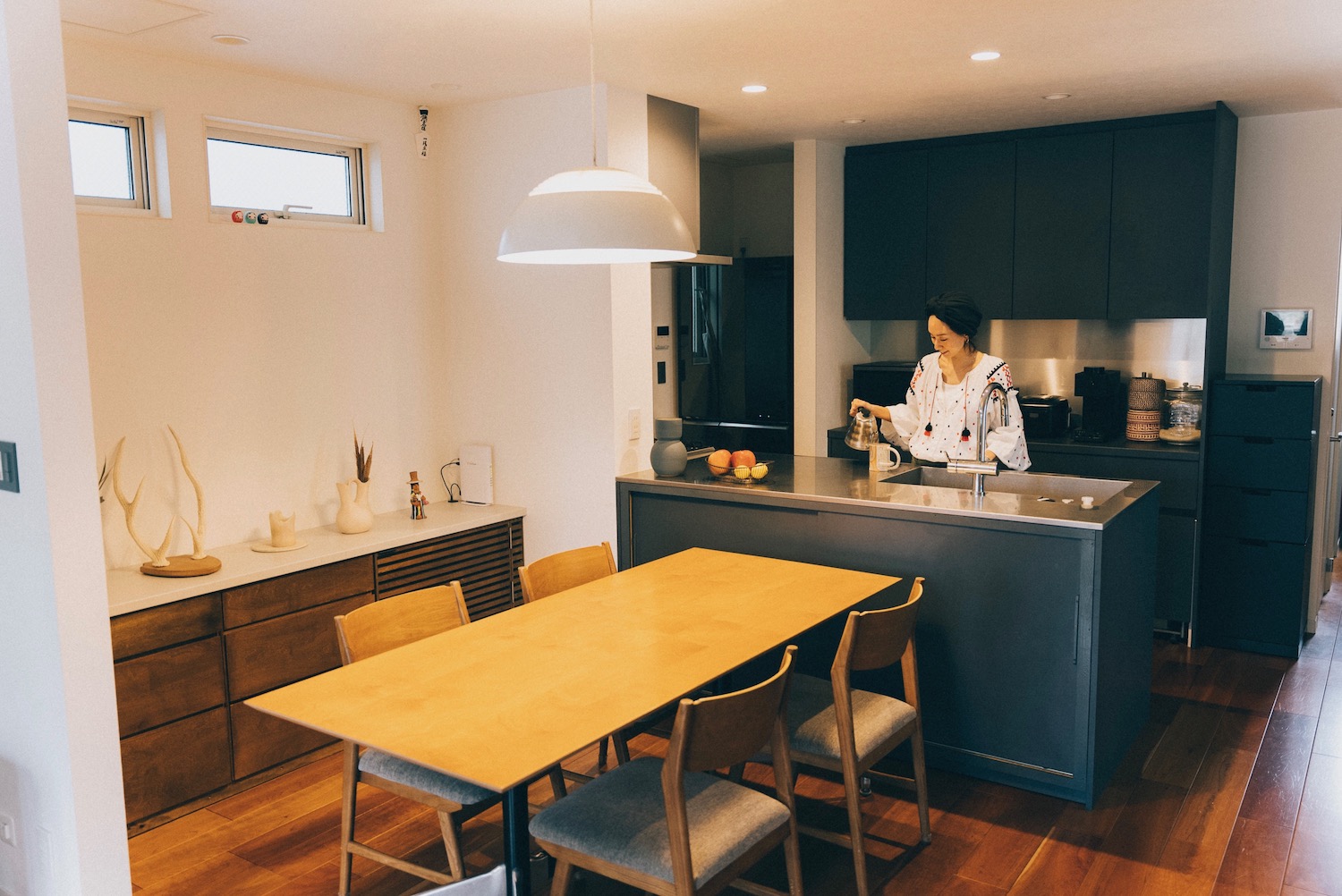 オープンキッチンにしたのは料理をしながらリビングにいる家族やお客さんとコミュニケーションを取りたかったから。