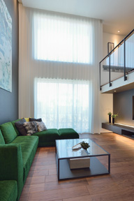 開放感に満ちたくつろぎのリビング、縦にも横にもつながりをもつ、安らぎの空間です