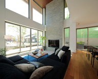 • 床を一段下げたピットリビングと吹抜から生まれるのびやかな開放感。つい座りたくなる空間です。