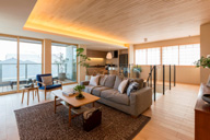 • 最上階ならではの採光と眺望が楽しめるリビング。窓を開ければ外との一体感も楽しめます。