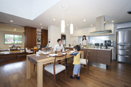 • みんなが集う家。家族みんなが集まるオープンDKを中心にリビング・タタミの間がつながっています。