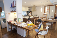 • 見守りコーナー。親子のちょうど良い距離感のカウンターがあれば子は賢くすくすく育ちます。