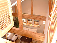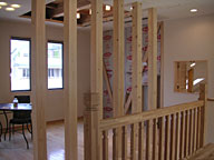 • 6本連なった4寸角の桧柱。自慢の構造体もご覧になれます。