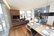 厚木FREX展示場は「子育てや家事で忙しい奥様が仕事と家事を両立するための空間設計」をした最新モデルの二世帯住宅です。工夫を凝らした収納や、みんなのホール、そらのま、ダウンフロアリビングなど新しいライフスタイルを提案しています。