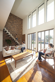 小さい土地のこだわりリビング。小さい土地でも諦めない。人気のインテリアと、大満足のホームシアター。