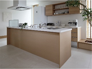• 明るい木素材のテイストの2Fキッチン。さわやかな光に包まれてお料理のテンションも上がります。