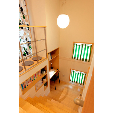 階段踊場スペースを有効にし、マイスターの強みを活かした造作本棚