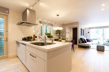 異なるライフスタイルを優しくつなげ、暮らしの可能性を広げる都市型住宅。モダンな空間にエレガントな雰囲気をミックス。 カジュアルにもフォーマルにも設えしてあるインテリアが特徴です。 首都圏で多い都市型3階建住宅をリアルサイズで演出しながら、ゆったり生活できる単世帯住宅・二世帯住宅としてのご案内が可能。 一年中快適で安心して暮らしていただける住まいとなっております。
