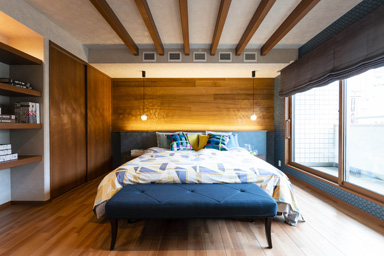 ピーリング仕上げの壁や木の温もりを感じる天井梁とインテリアが深い安らぎをもたらします