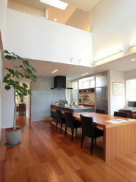 • 2階子世帯 吹き抜けで開放感のあるダイニングです。家事動線もとても良く考えられた設計です。