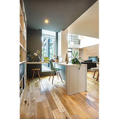 ダイニングの横に配置したスタディスペースは、お子様が宿題をしたり、また、ご主人や奥様のワークスペースとしても活用できます。