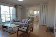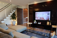 鏡面仕上げのTVボードが上質感を演出。落ち着いた雰囲気のリビングです