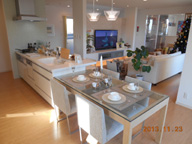 家族の会話が弾むペニンシュラ型キッチンとリビング