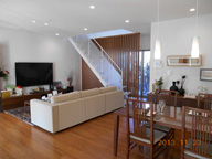 リビング中央に階段を施工。空間の演出のほか、家族の動線も確認できます。
