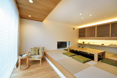 段差を設けて、落ち着きに満ちたくつろぎ空間を演出。憩いの場としておもてなしします。