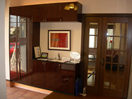 家のイメージは玄関で決まる。グランドピアノと同じ鏡面仕上げのシューズボックス。(自社オリジナル)