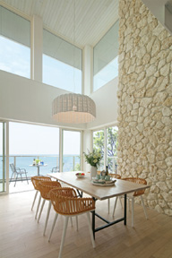• 吹抜けとコーナーサッシが大空間を演出。 海や空と一体になる爽やかな開放感が、くつろぎをもたらします。